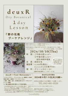 ■定員:各回8名■参加費:13,000円(税込)(herriottさんのお菓子付き)※お支払いは現金のみとなります■持ち物:花切りバサミもしくは工作バサミ☆レッスン参加の方に店舗で利用できる1割引券を差し上げます。