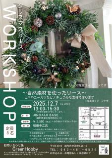 クリスマスワークショップ「自然素材を使ったリース」のお知らせです!!